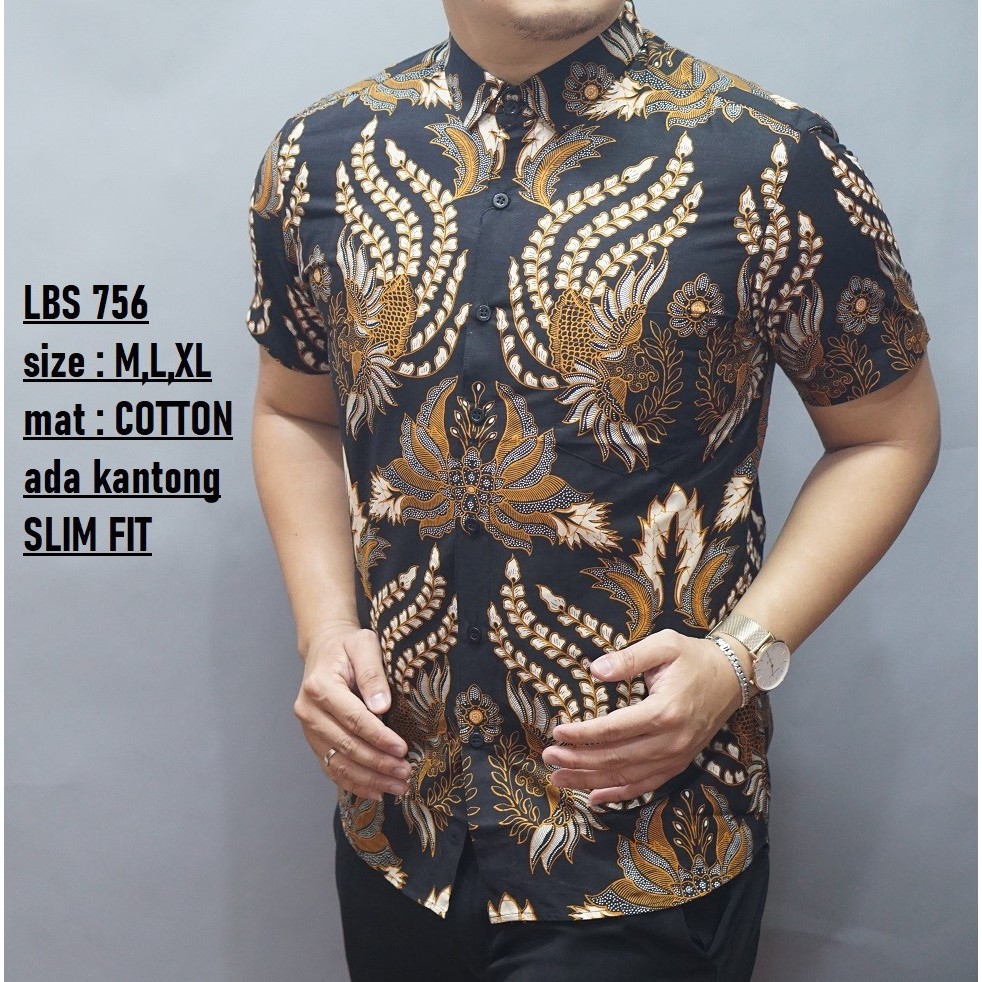 Jual Lbs 756 Baju Pendek Batik Warna Dasar Hitam Motif Kuning Gold Emas Shopee Indonesia